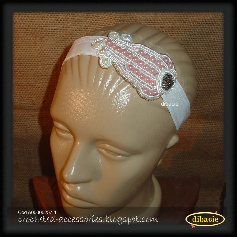Bentita din bumbac, cu piesa ornamentala creata cu tehnica soutache, margele acrilice. Reglabila, pentru copii, marime 45-52.